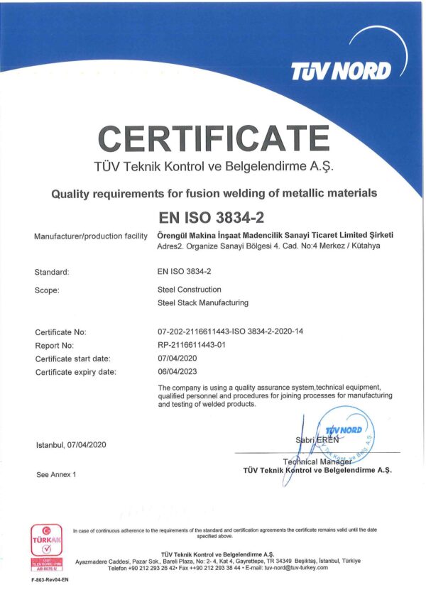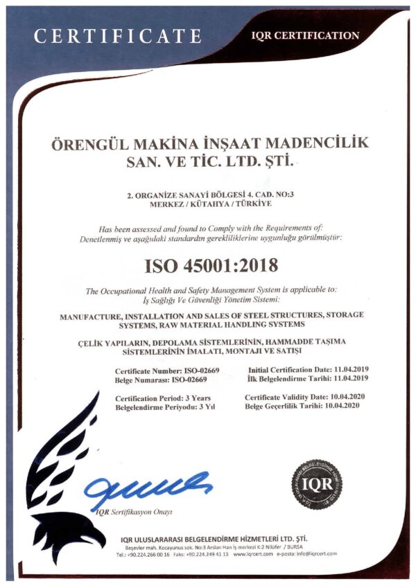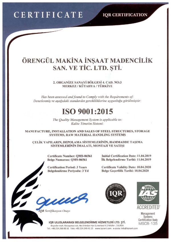 Our company Orengul Machine Construction Mining Industry and Trade Limited Company, started its business life in Bereket Industrial Site in an area of ??120 m² in 2004 and continues to develop itself continuously in its activities since the day it was founded and acts in the consciousness of continuous change and development in order to respond to the increasing demands of its customers. In line with this awareness, as of 2011, Kütahya 2nd Organized Industrial Zone, 1.500 m² closed, 10.000 m² open area under the VMG brand Steel Construction, Storage Systems and Raw Material Handling Systems services continued. As of 2015, the factory operating in the existing 2nd Organized Industrial Zone is operating on a total area of ??18,000 m², including 5.5OOm² closed and 12.5OO m² open area. Read More…